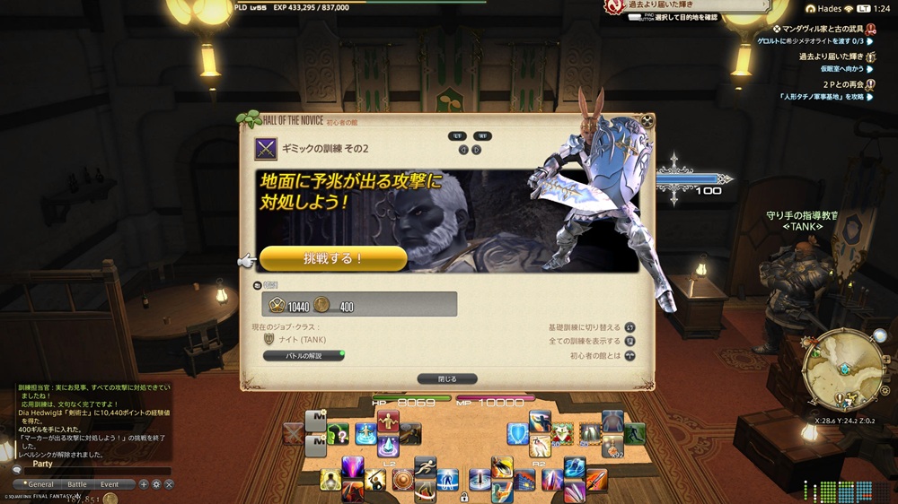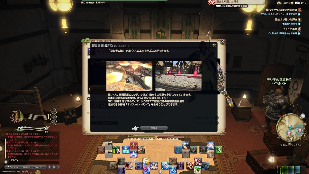 初心者さんが初めてのIDの前に練習できる「初心者の館」に訪れ訓練をすることで経験値アップ装備が貰えます。